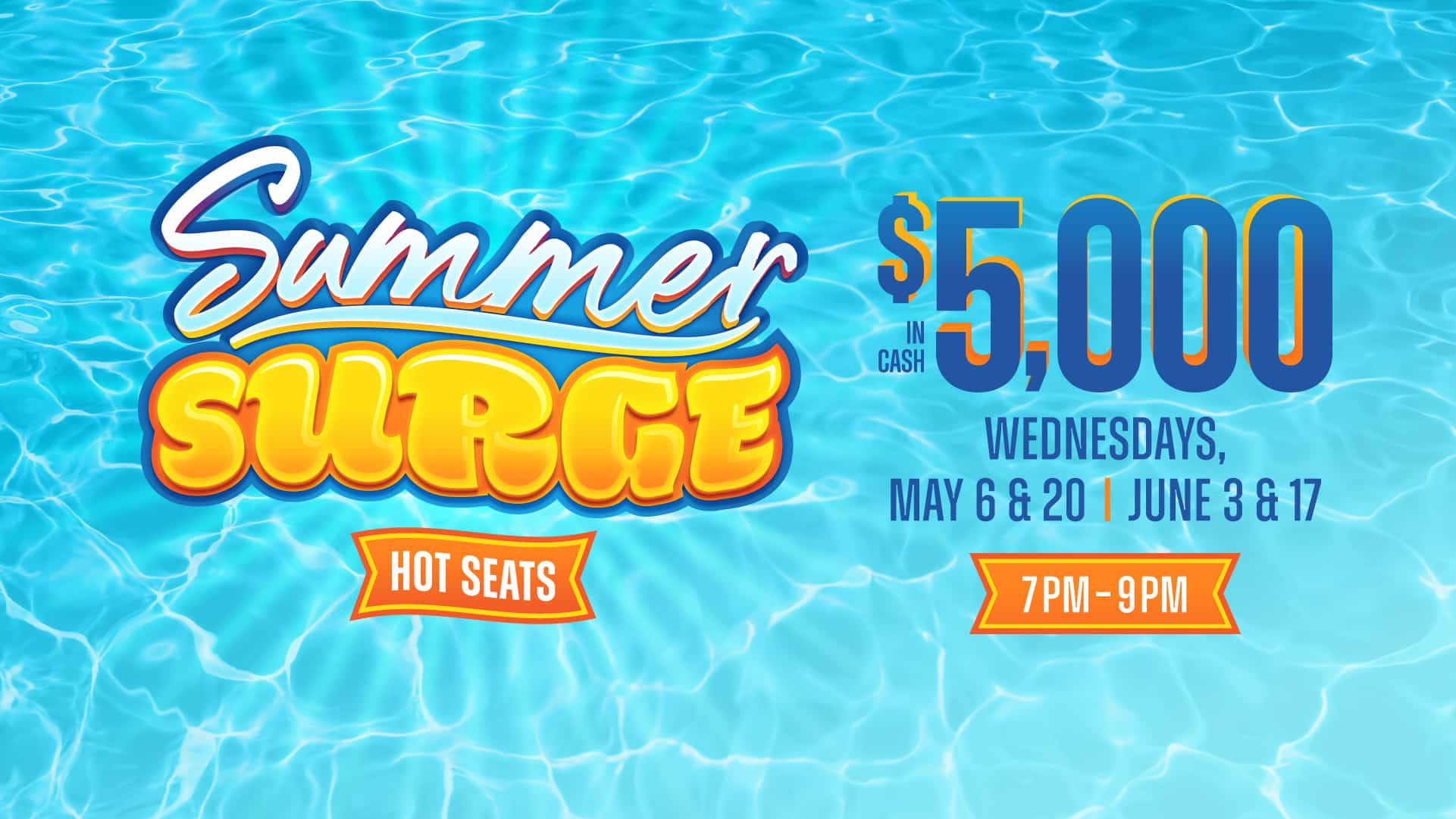 Join Jet Stream Casino’s Summer Surge Hot Seats on May 6 & 20 and June 3 & 17 for your chance to win.